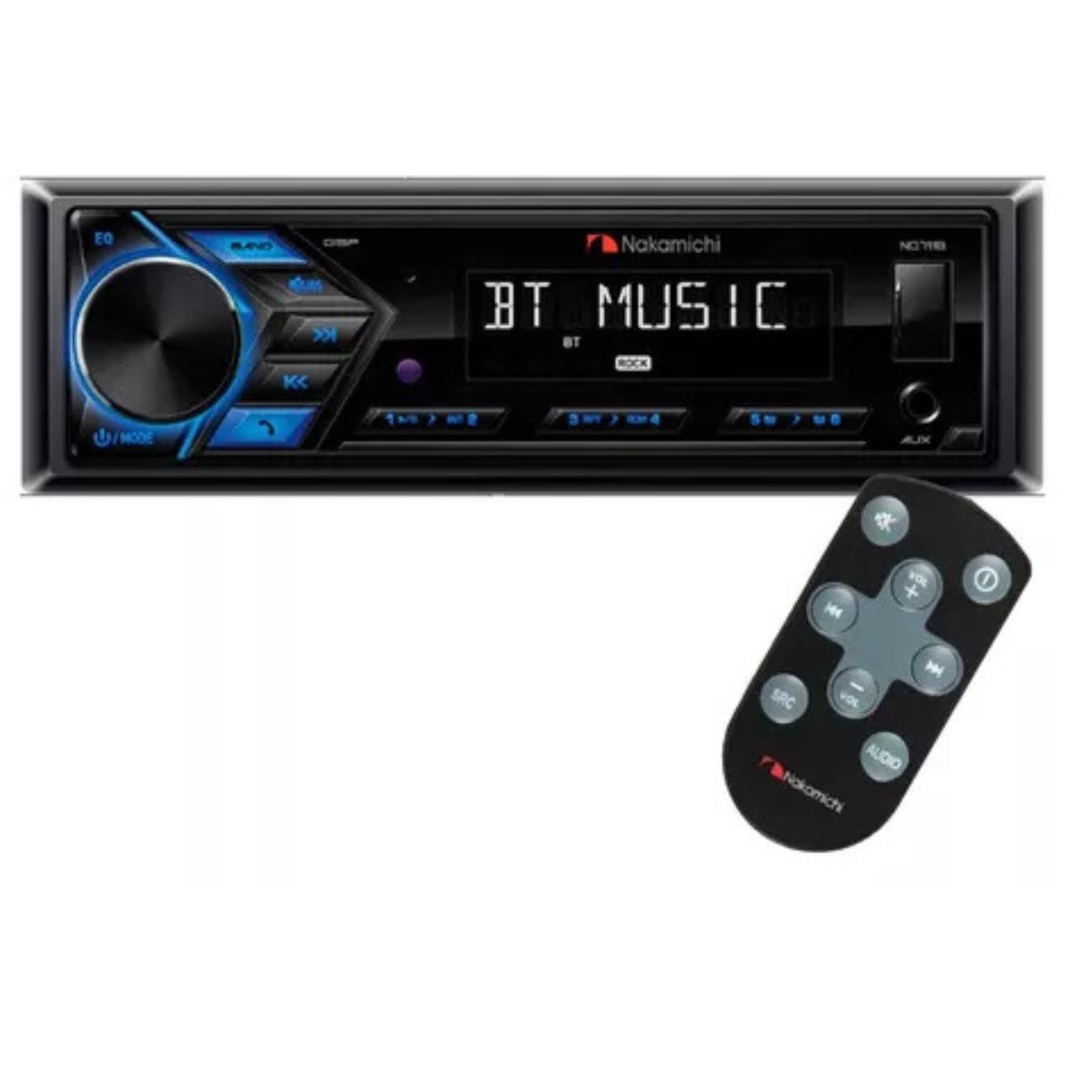 Receptor de Mídia Digital Nakamichi NQ711B – 1-DIN com Bluetooth, USB e Rádio AM/FM