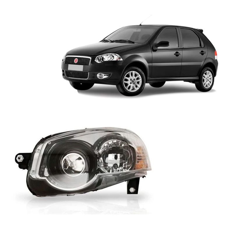 Farol Fiat Palio 2008 2009 2010 2011 2012 Siena Weekend Strada G4 Cromado com Canhao Preto
