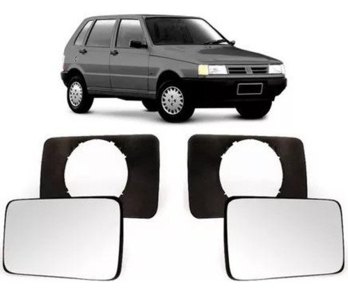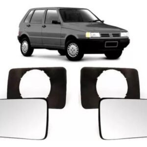 Par Vidro Com Base Retrovisor Uno 1989 a 1990 LD + LE