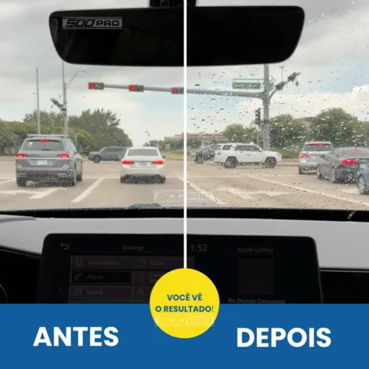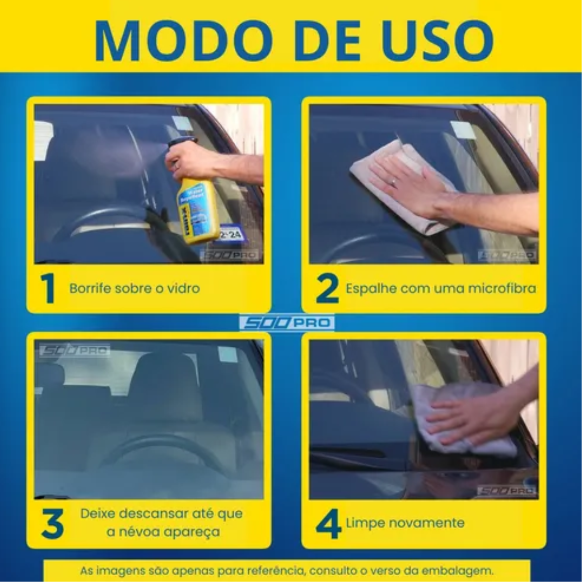 Sua fórmula especial cria uma película invisível que repele água, melhorando a visibilidade em condições de chuva, neblina e sereno. Também atua como cristalizador e facilita a limpeza dos vidros.
